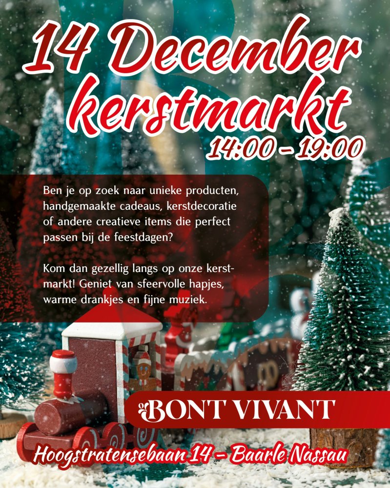 Kom dan gezellig langs op onze kerstmarkt op 14 december 2025! Geniet van sfeervolle hapjes, warme drankjes en fijne muziek.