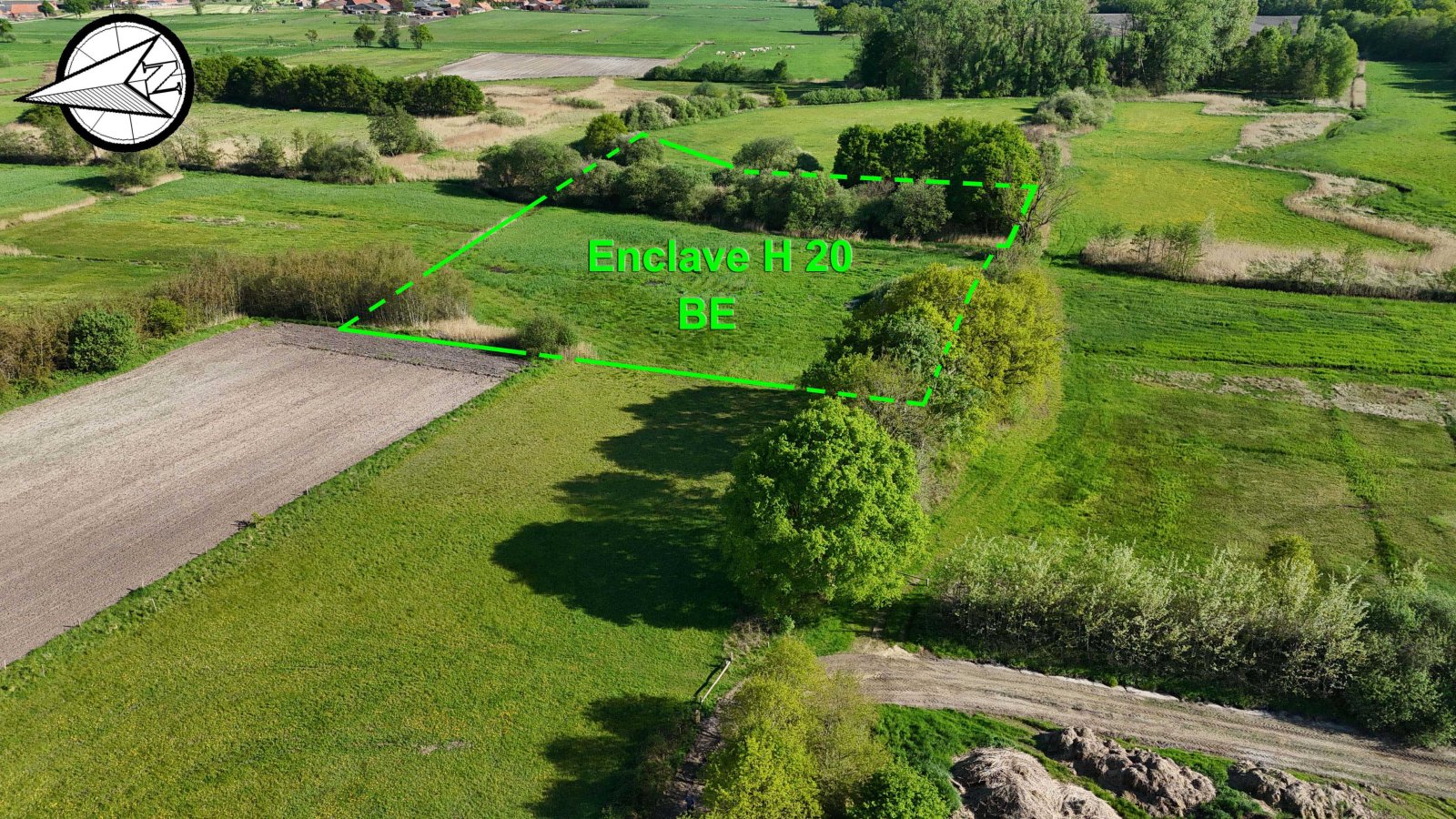 H20 est une enclave quasi rectangulaire, située dans une vallée de ruisseau à 42,85 mètres d'un chemin de campagne. L'enclave comprend un champ traversé par le cours d'eau Markske d'est en ouest. Le ruisseau divise la parcelle en une grande partie nord et une petite partie sud. Il y a beaucoup de roseaux qui poussent là-bas. H20 est situé à 77,66 mètres de la frontière principale.